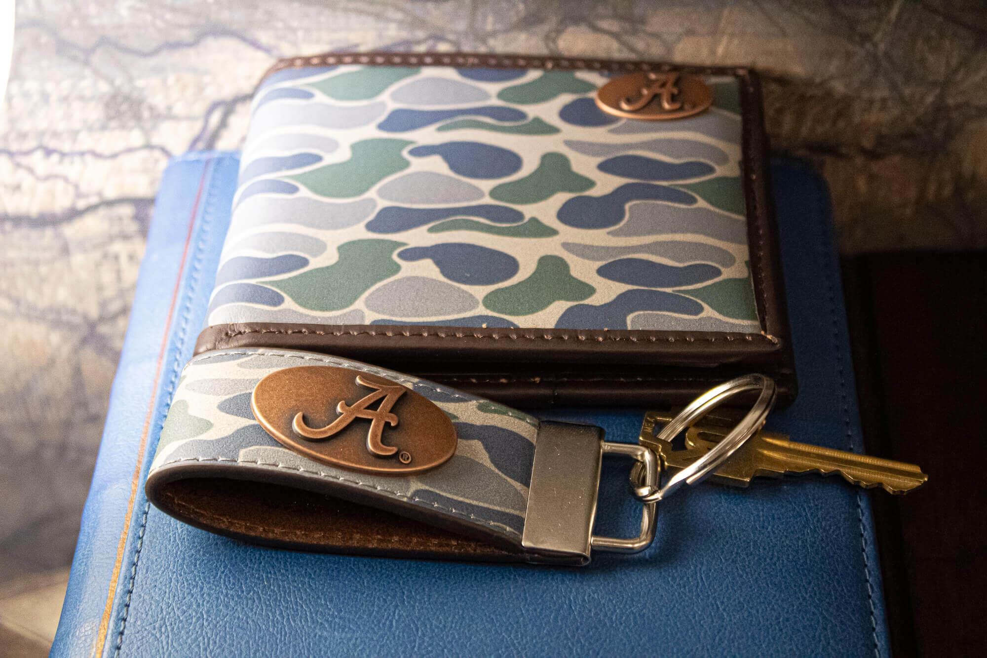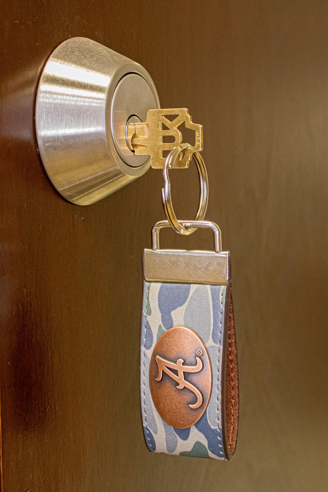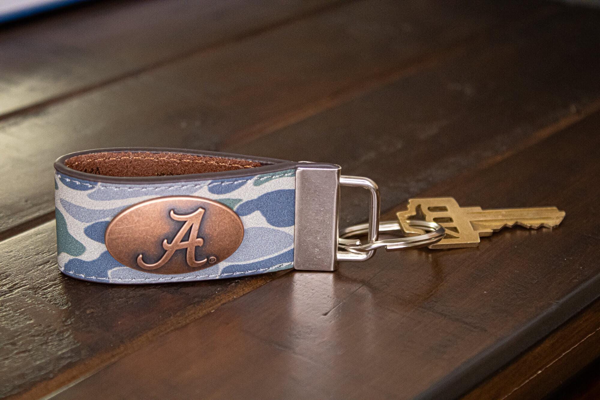 Alabama Crimson Tide Old School Camo Leather Loop Keychain.