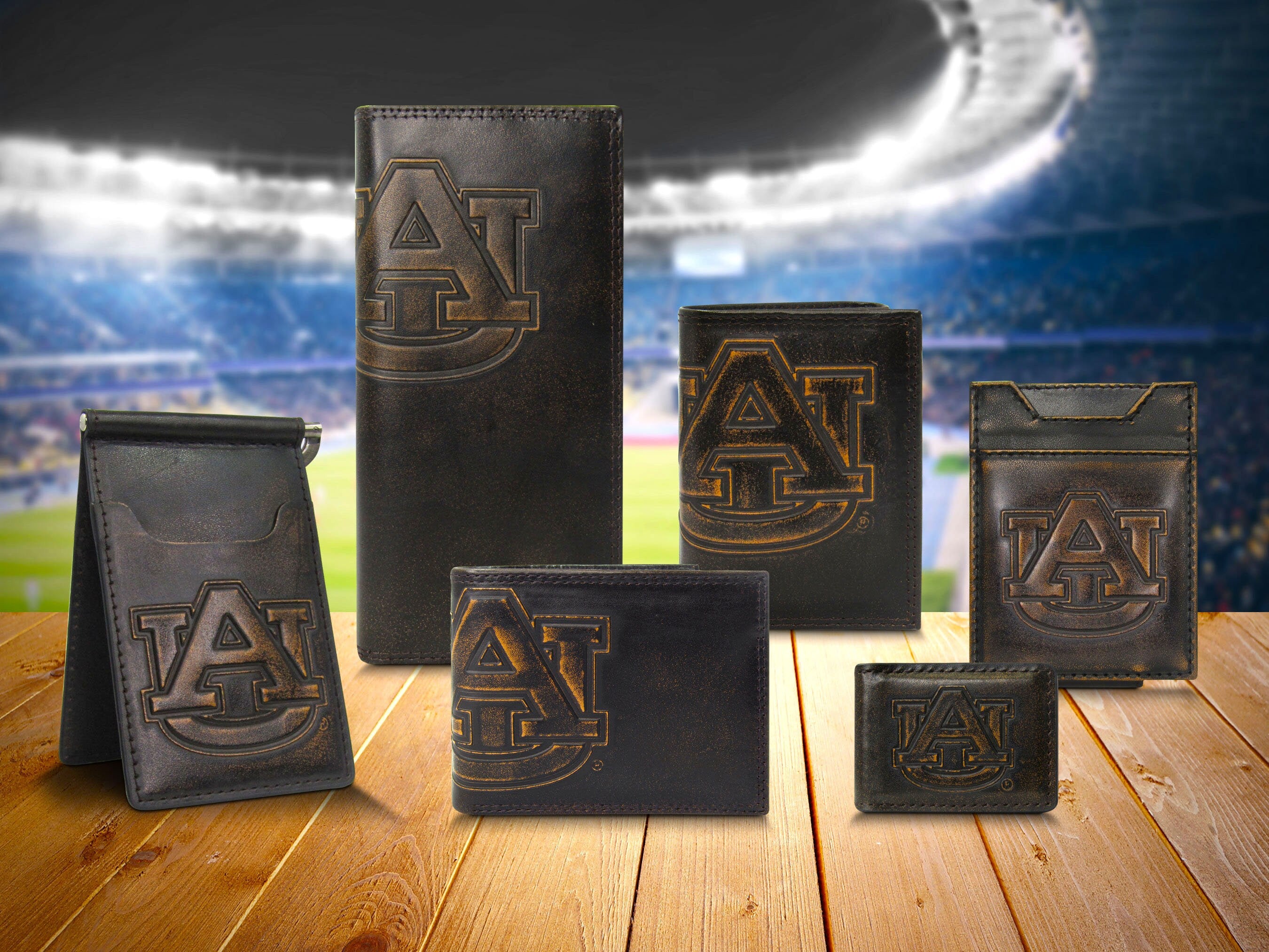 Auburn Tigers Men's Collegiate Leather Belt - Casual Belt in Brown, Gray, Black Colors - Gameday College Belt - Auburn Gift Merch