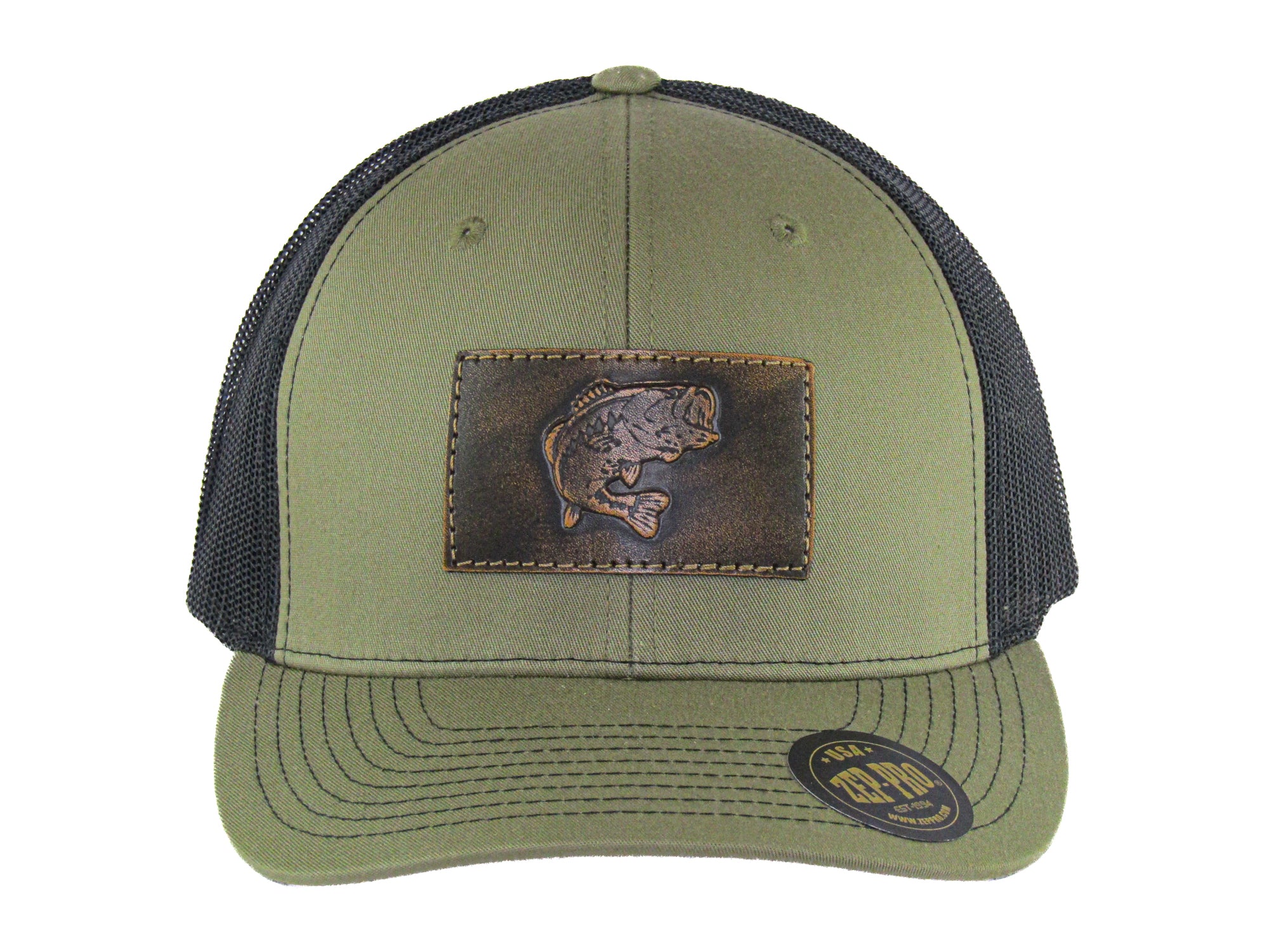 Quick viewBass Old School Camo Trucker Hat. Hand Burnished Full Grain Leather Patch. 5-Panel Richardson 112 Snapback Cap. Stitched Bass Leather Patch. $42.00 /Brown/Tan/CamoGreen/Gray/CamoAvailable in 2 colors