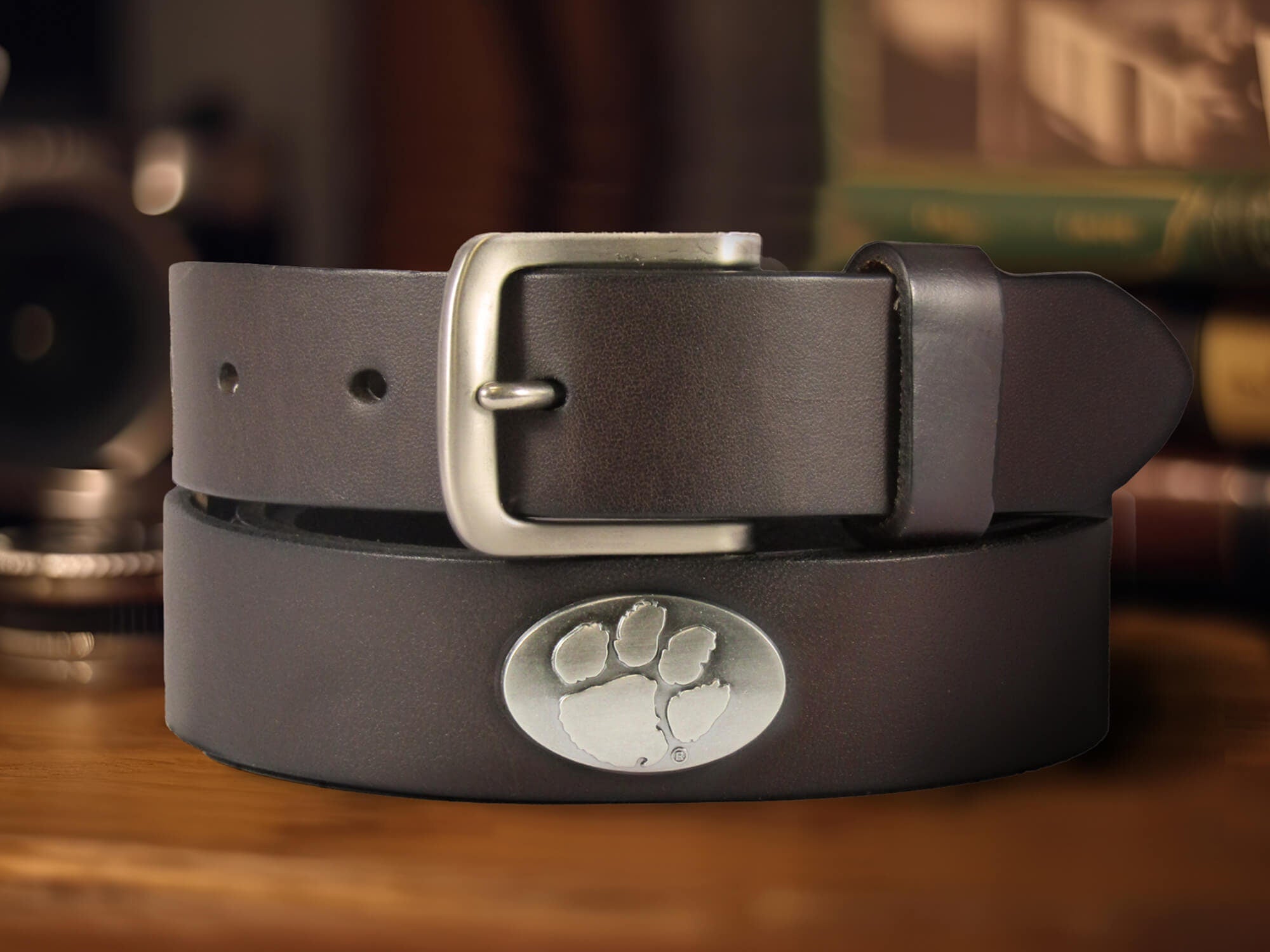 Clemson Tigers Men's Collegiate Leather Belt - Casual Belt in Brown, Gray, Black Colors - Gameday College Belt - Clemson Gift Merch