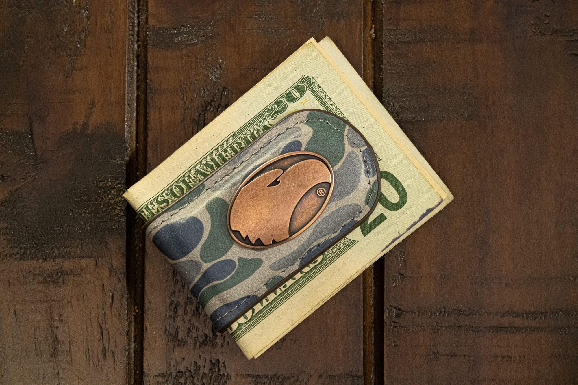 Show your Georgia Southern Eagles pride with an original Zep-Pro Old School Camo leather money clip. It is a stylish and unique way to show enthusiasm while keeping important cards and cash organized. This Zep-Pro wallet is constructed of full grain leather with an Old School Camo print. The metal concho emblem has an antique copper finish which perfectly accents this unique accessory.