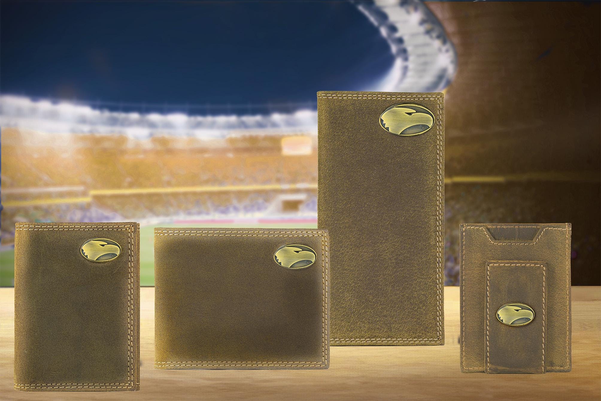 Show your Georgia Southern Eagles pride with an original Zep-Pro collegiate leather belt, available in brown, gray, black colors. This accessory is popular among college students and alumni. It is a stylish and unique way to show enthusiasm with a pair of casual slacks, jeans or khakis. This Zep-Pro belt is constructed of full grain leather with a pullup finish and features the school’s official logo, proudly displayed around the leather strap.