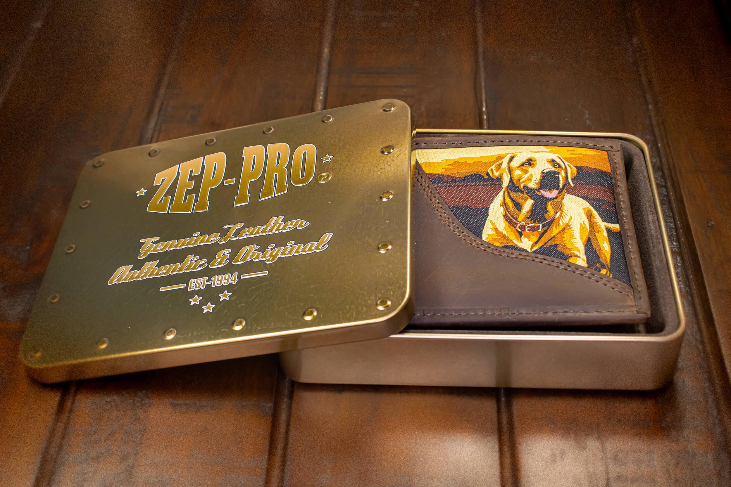 Show your passion with an original Zep-Pro leather bifold wallet featuring a Woven Patch - Lab design. The dog imagery on these wallets taps into our intrinsic connection to nature and wildlife. It is a stylish and unique way to show enthusiasm while keeping important cards and cash organized. This Zep-Pro wallet is constructed of full grain leather with a sewn in woven patch Lab design.