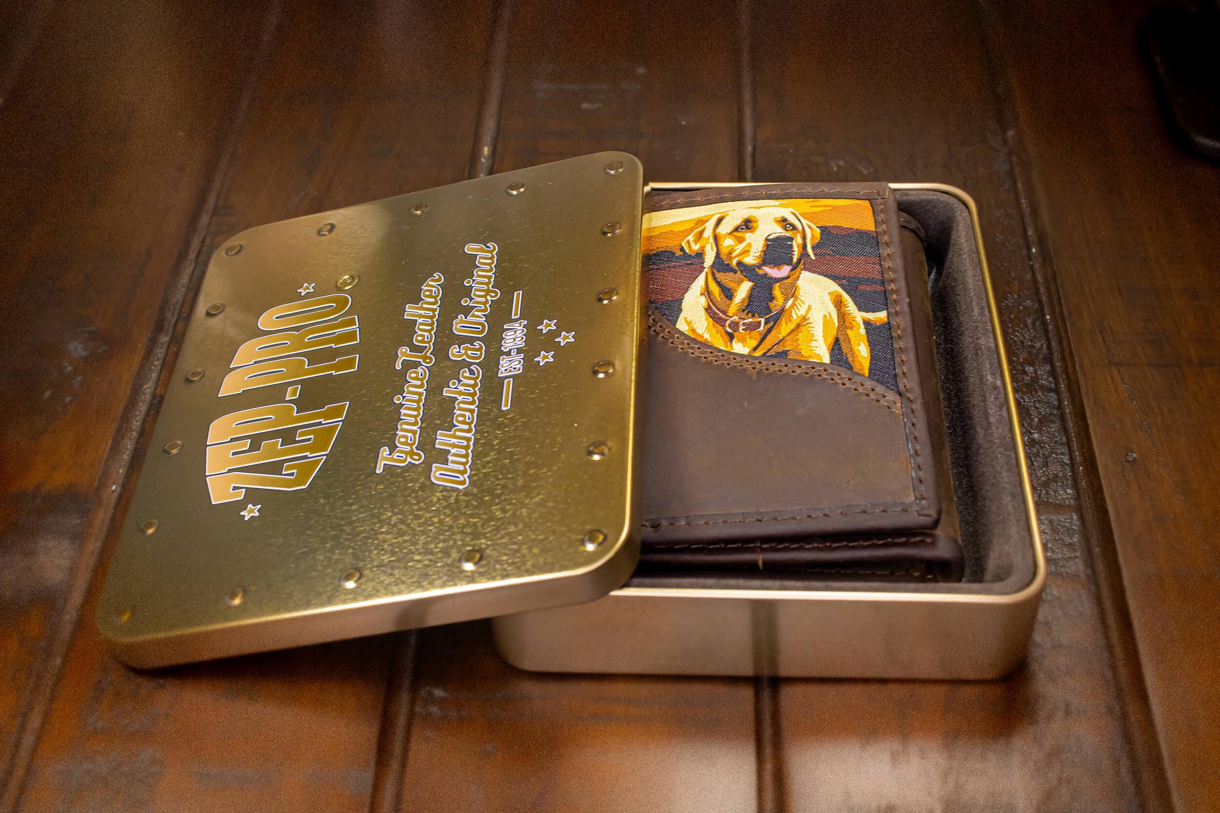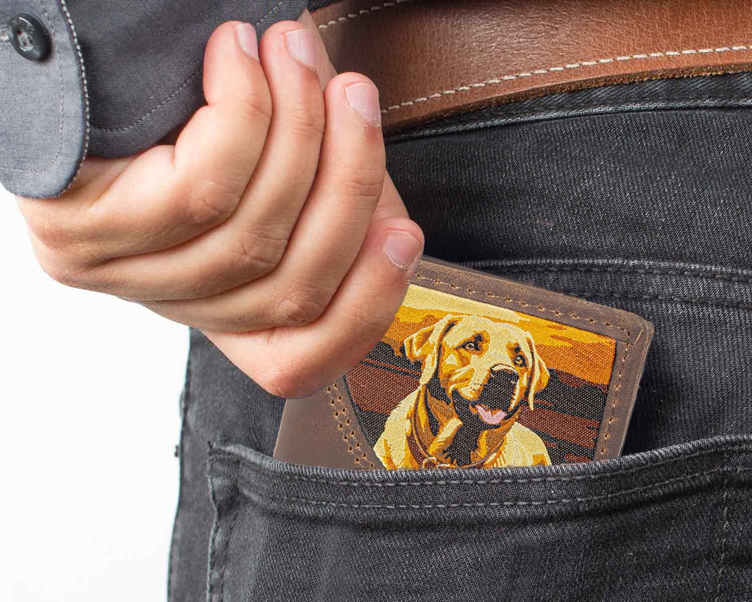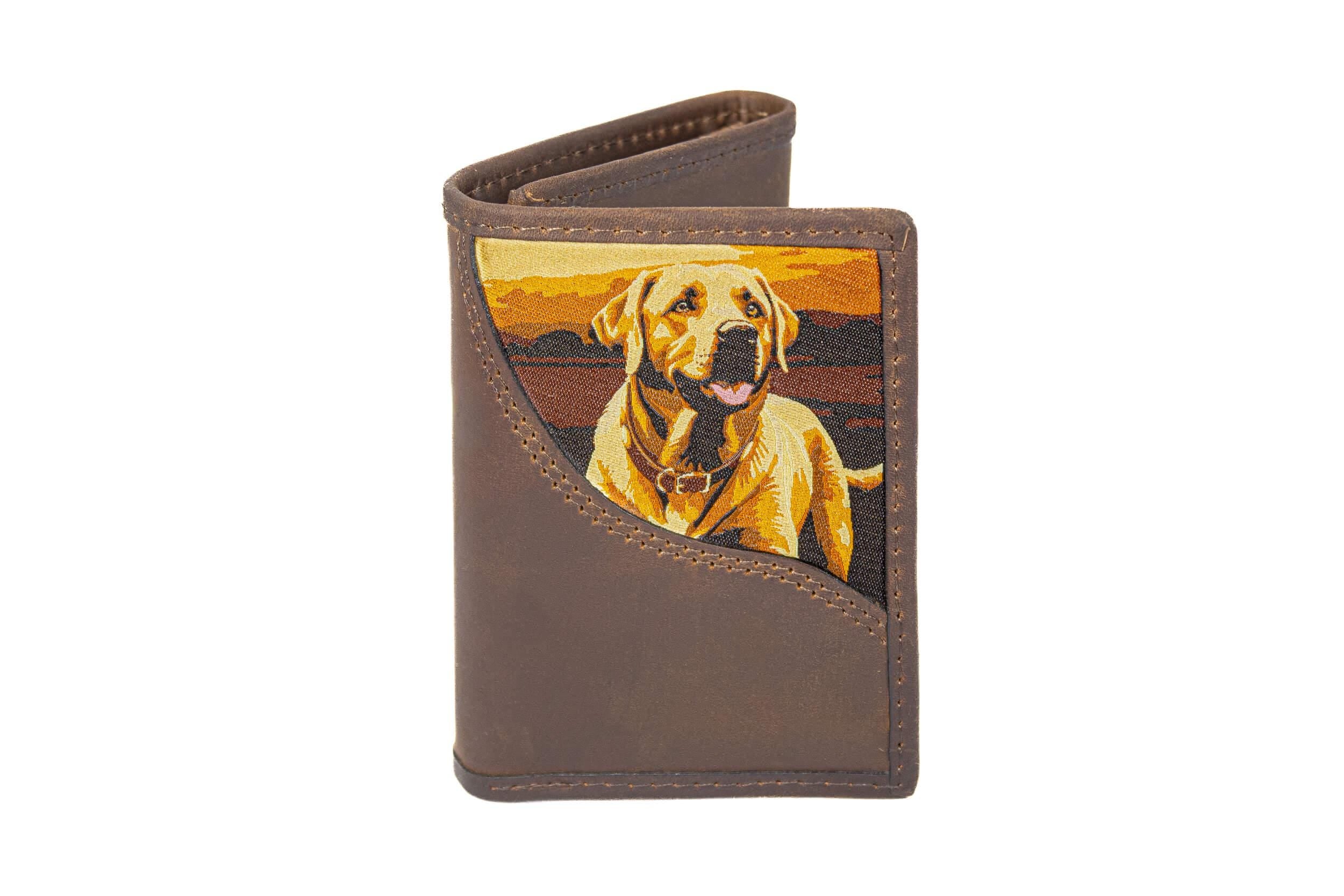Show your passion with an original Zep-Pro leather trifold wallet featuring a Woven Patch - Lab design. The dog imagery on these wallets taps into our intrinsic connection to nature and wildlife. It is a stylish and unique way to show enthusiasm while keeping important cards and cash organized. This Zep-Pro wallet is constructed of full grain leather with a sewn in woven patch Lab design.