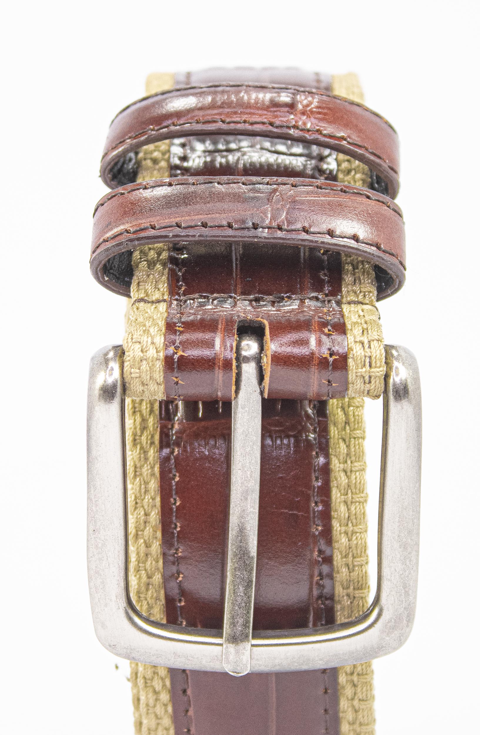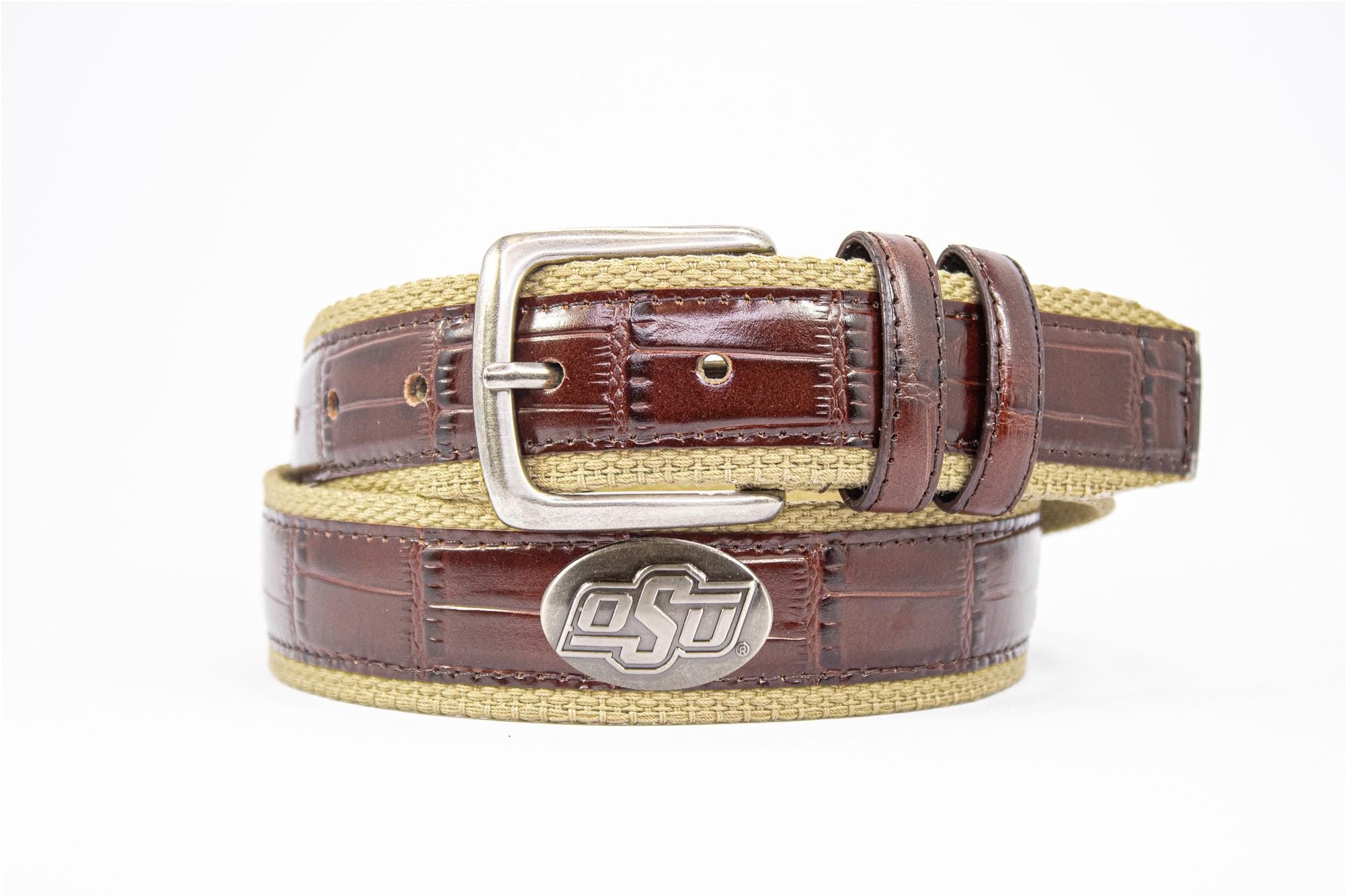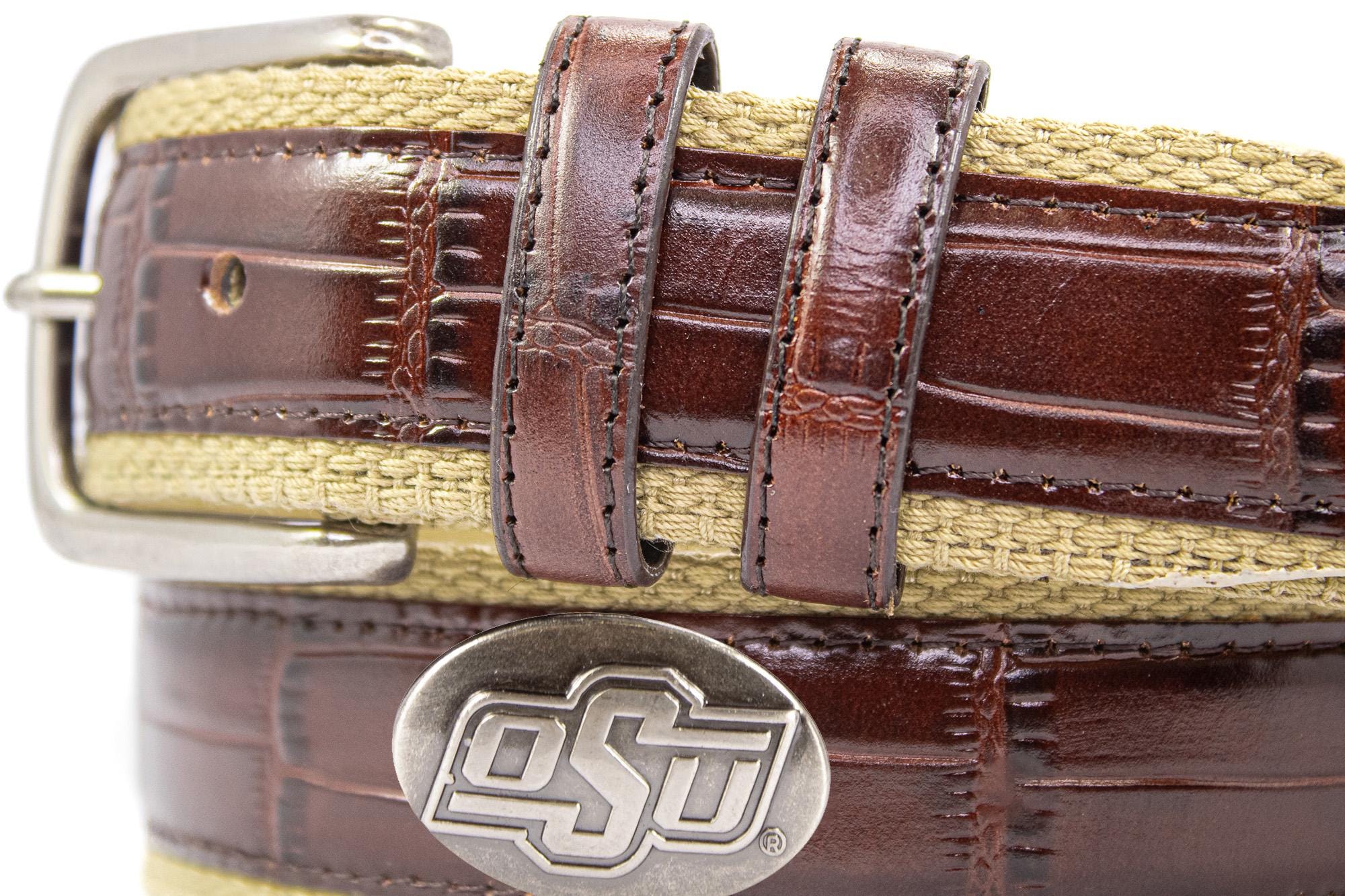Oklahoma State Cowboys Khaki Webbed Belt With Croc Leather Inlay
