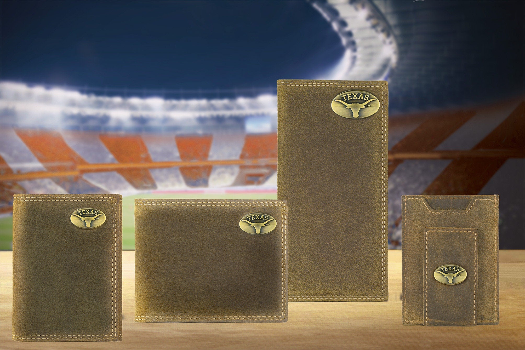 Show your Texas Longhorns pride with an original Zep-Pro collegiate leather belt, available in brown, gray, black colors. This accessory is popular among college students and alumni. It is a stylish and unique way to show enthusiasm with a pair of casual slacks, jeans or khakis. This Zep-Pro belt is constructed of full grain leather with a pullup finish and features the school’s official logo, proudly displayed around the leather strap.