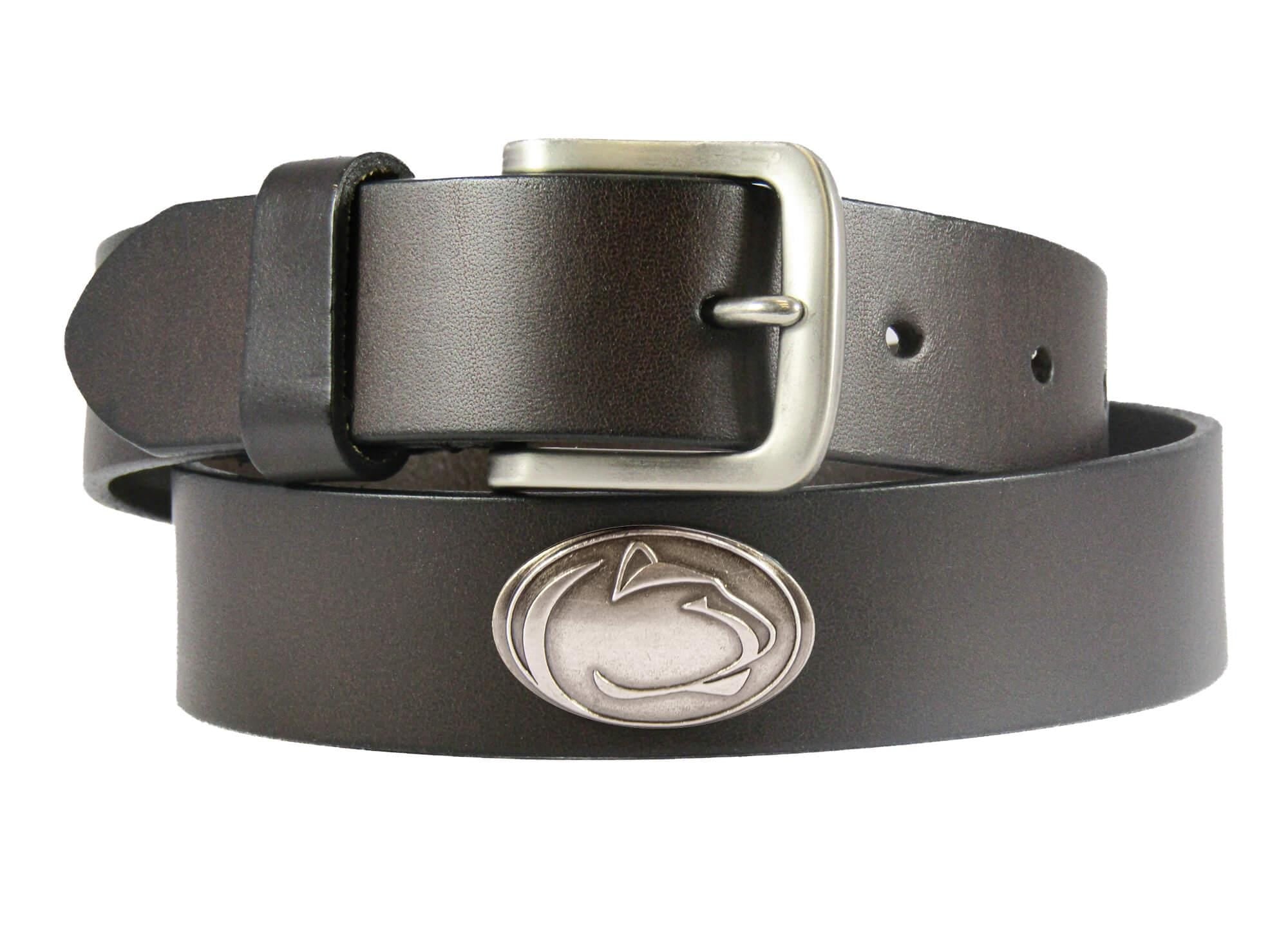 Show your Penn State Nittany Lions pride with an original Zep-Pro collegiate leather belt, available in brown, gray, black colors. This accessory is popular among college students and alumni. It is a stylish and unique way to show enthusiasm with a pair of casual slacks, jeans or khakis. This Zep-Pro belt is constructed of full grain leather with a pullup finish and features the school’s official logo, proudly displayed around the leather strap.
