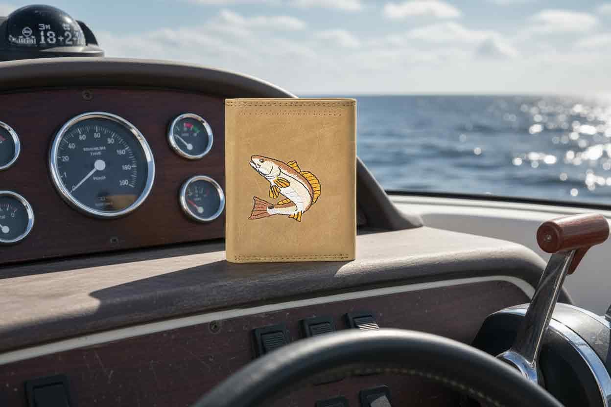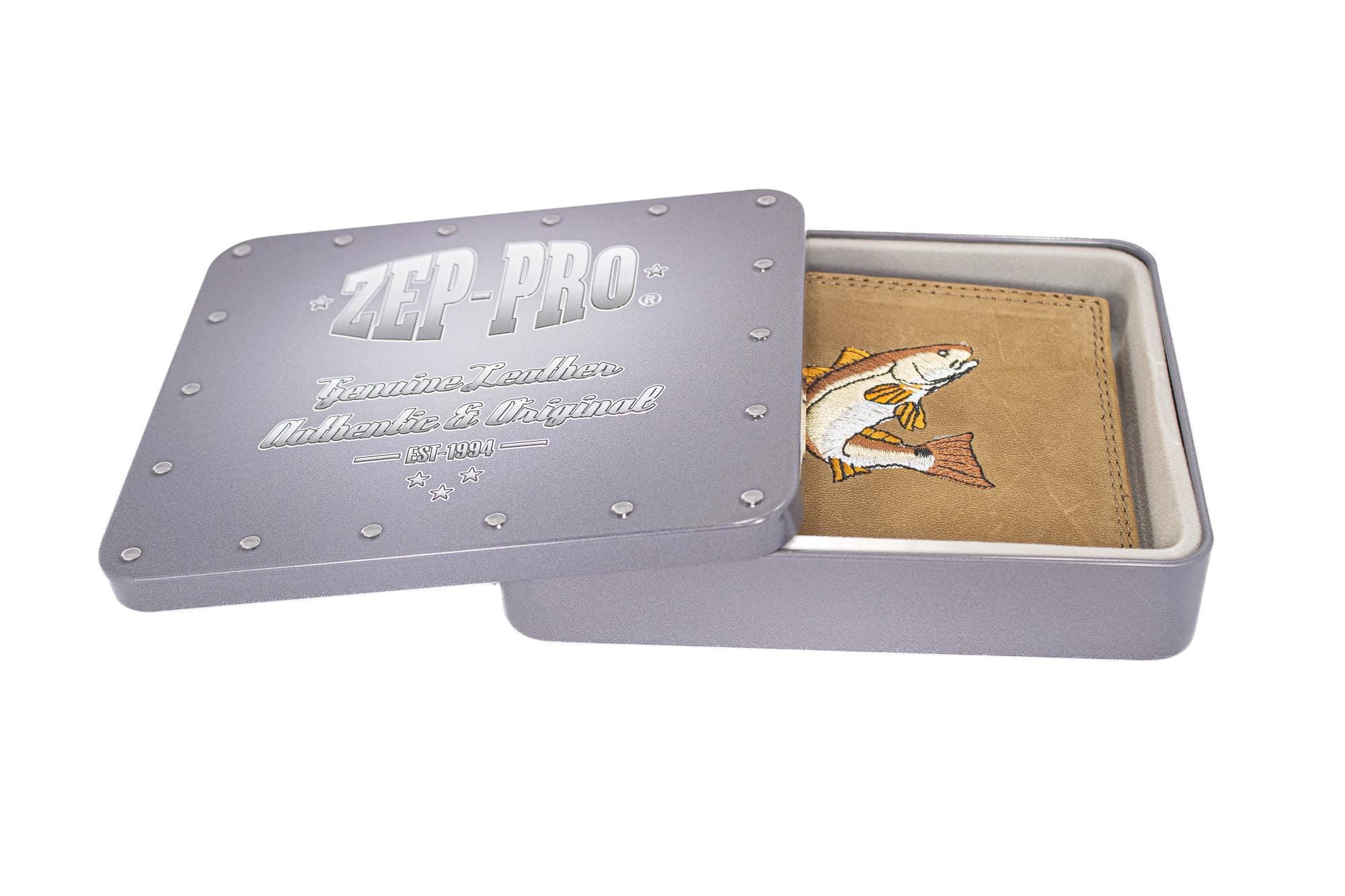 Show your passion with an original Zep-Pro embroidered leather wallet featuring a Redfish design. The fish imagery on these wallets taps into our intrinsic connection to nature and wildlife. It is a stylish and unique way to show enthusiasm while keeping important cards and cash organized. This Zep-Pro wallet is constructed of full grain leather and features the Mahi-mahi design, proudly displayed on the front.