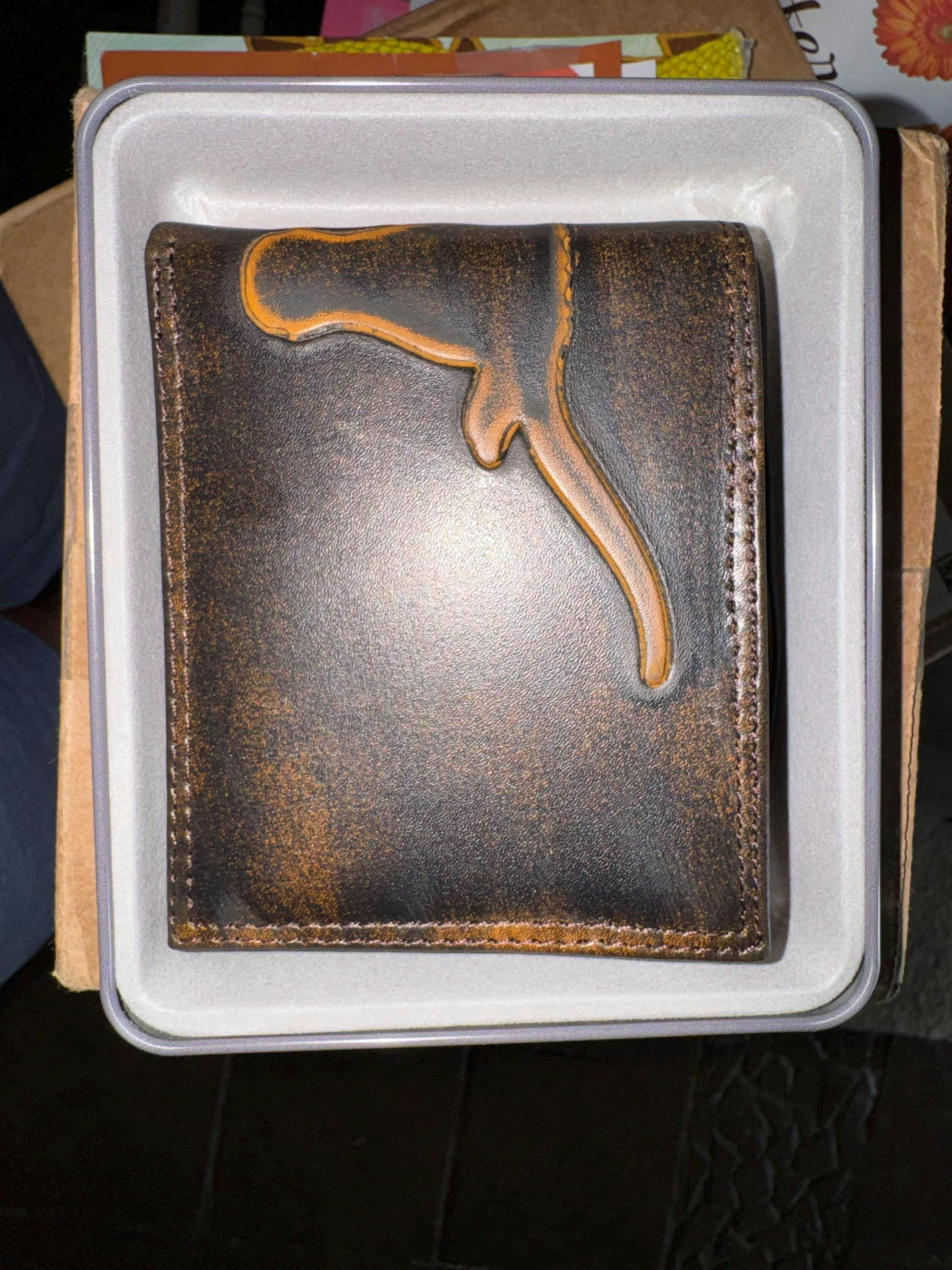 All wallets are handmade from genuine full grain leather. Due to the natural and rustic appearance of the leather, irregularities such as nicks and marks may be present. These are not considered defects. With use and time, the leather will also soften and change colors as the natural oils release.